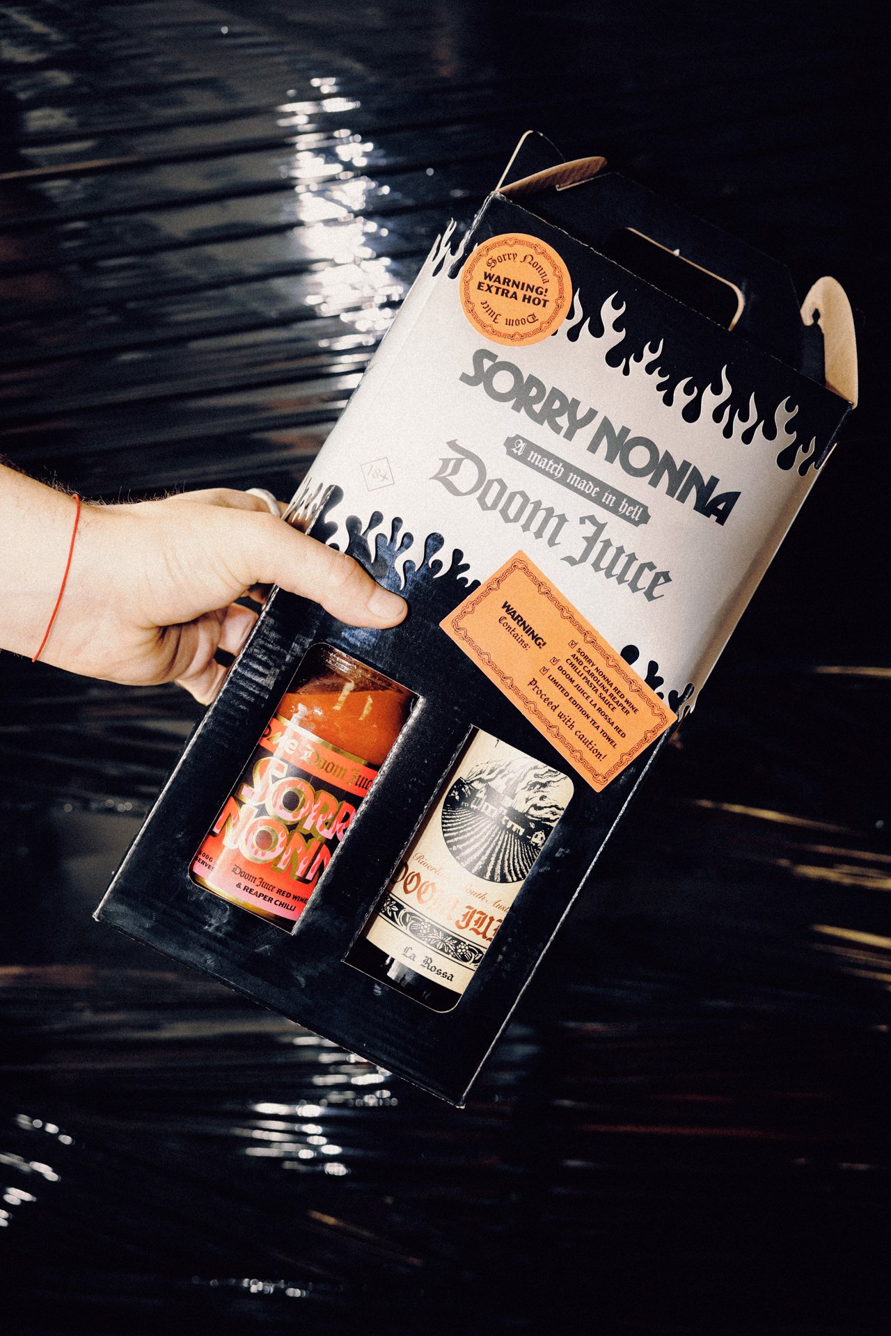 In our first collaboration we teamed out with our wine-merchant mates, Doom Juice Wines. We tipped in some Doom Juice La Rossa, and infused it with Carolina Reaper chillies – a match made in hell. The result is a rich, deep sauce with melt-your-face heat and a ton of fun.